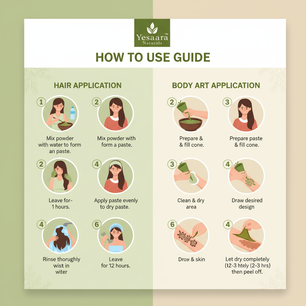 For Body Art: Mix with lemon juice and essential oils to create a smooth paste for mehndi application.