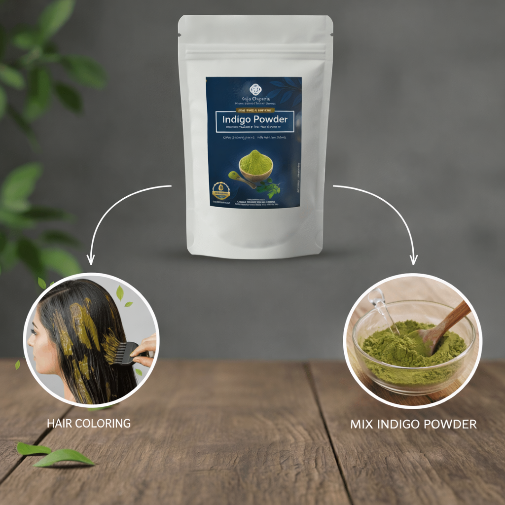 Saja Organic Indigo Powder 100gm – Herbal Hair Dye for Dark Black Hair | Ammonia-Free Color
