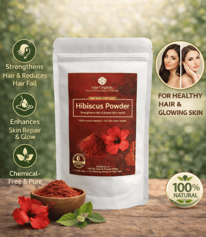 Saja Organic Hibiscus Powder 100g is a 100% pure and natural herbal powder made from carefully dried hibiscus flowers, known in Ayurveda for their powerful hair and skin benefits. Rich in natural vitamins, antioxidants, and amino acids, hibiscus powder is widely used to promote healthy hair growth and improve overall hair texture. It is an excellent choice for those looking for a chemical-free and natural beauty solution.