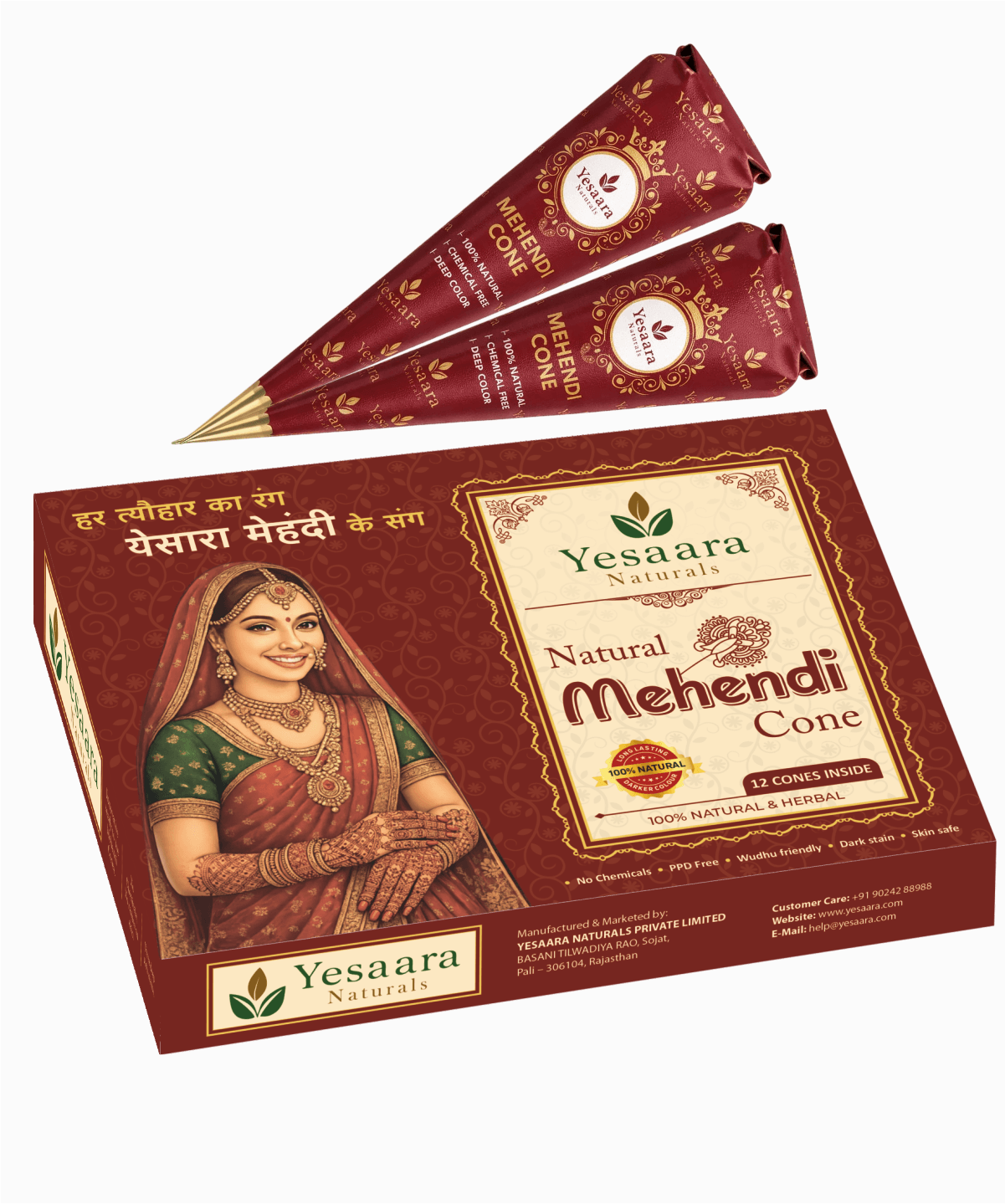 Yesaara Naturals Henna Mehendi Cone for Bridal Use – 100% Natural, Dark Stain, Long Lasting Color, Artist Favorite
